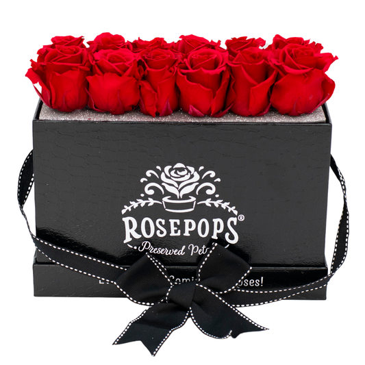 Black Monogrammed Keeper by the Dozen - 12 Red Roses