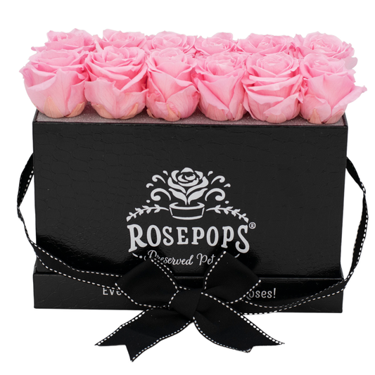 Black Monogrammed Keeper by the Dozen - 12 Soft Pink Roses