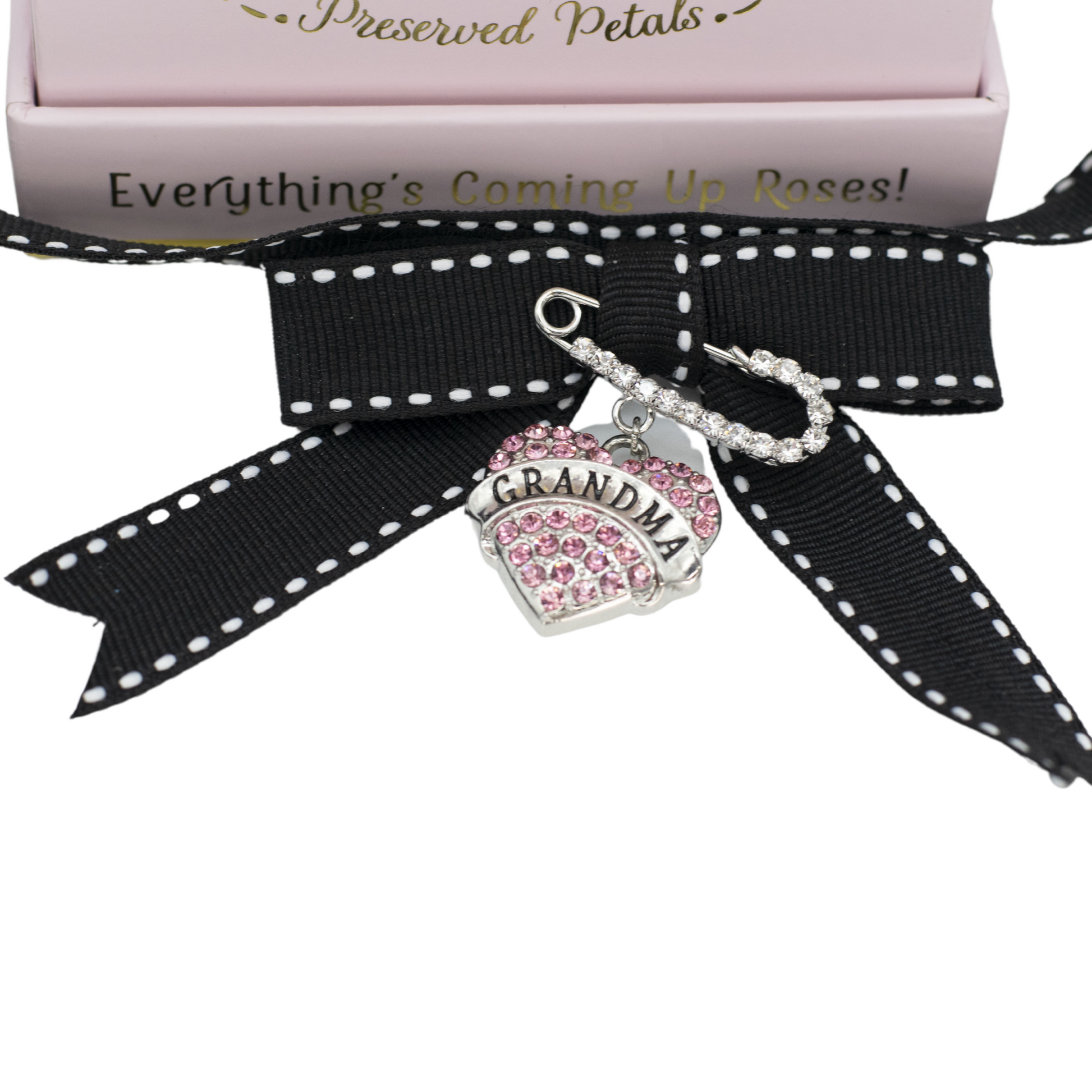 Four charming red roses in a petal pink box are a wonderful way to celebrate any Mom or Grandma on Mother's Day! Adorned with a gleaming Happy Mother's Day appliqué, this elegant arrangement is finished off by a crystal heart charm made just for Mom or Grandma. This POP is sure to bring all the love until next Mother's Day and beyond.