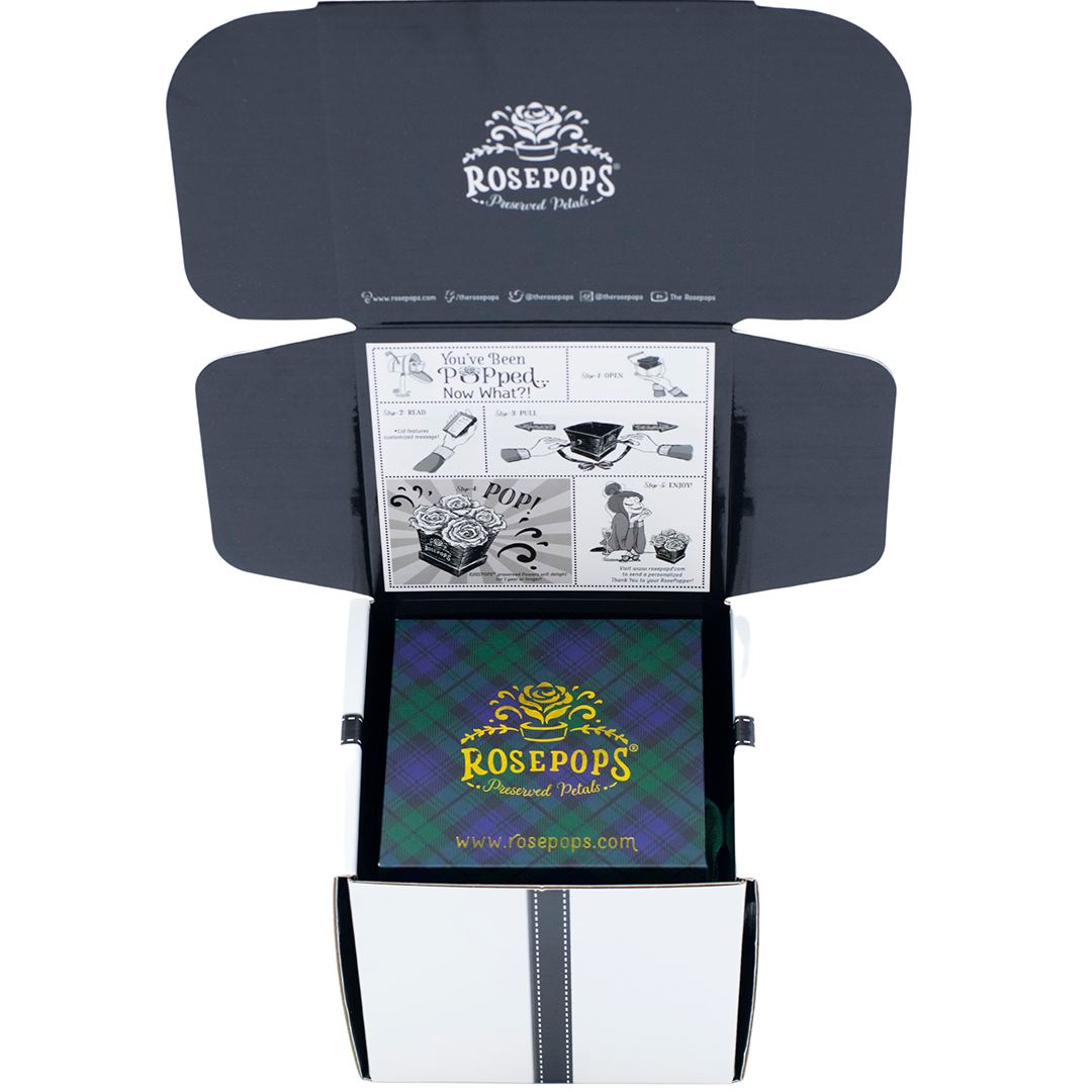 Invoking the beauty of the Scottish Highlands, these bodacious Blueberry blooms are the height of elegance, housed in classic Black Watch Tartan plaid. These preserved petals have been scented with our custom blended Berries in the Woods Arosatherapy fragrance, which embodies a perfect synthesis of Rose Petals, Red Wine and Ripe Berry top notes complimented by Geranium, Honey and Mixed Fruit base notes.