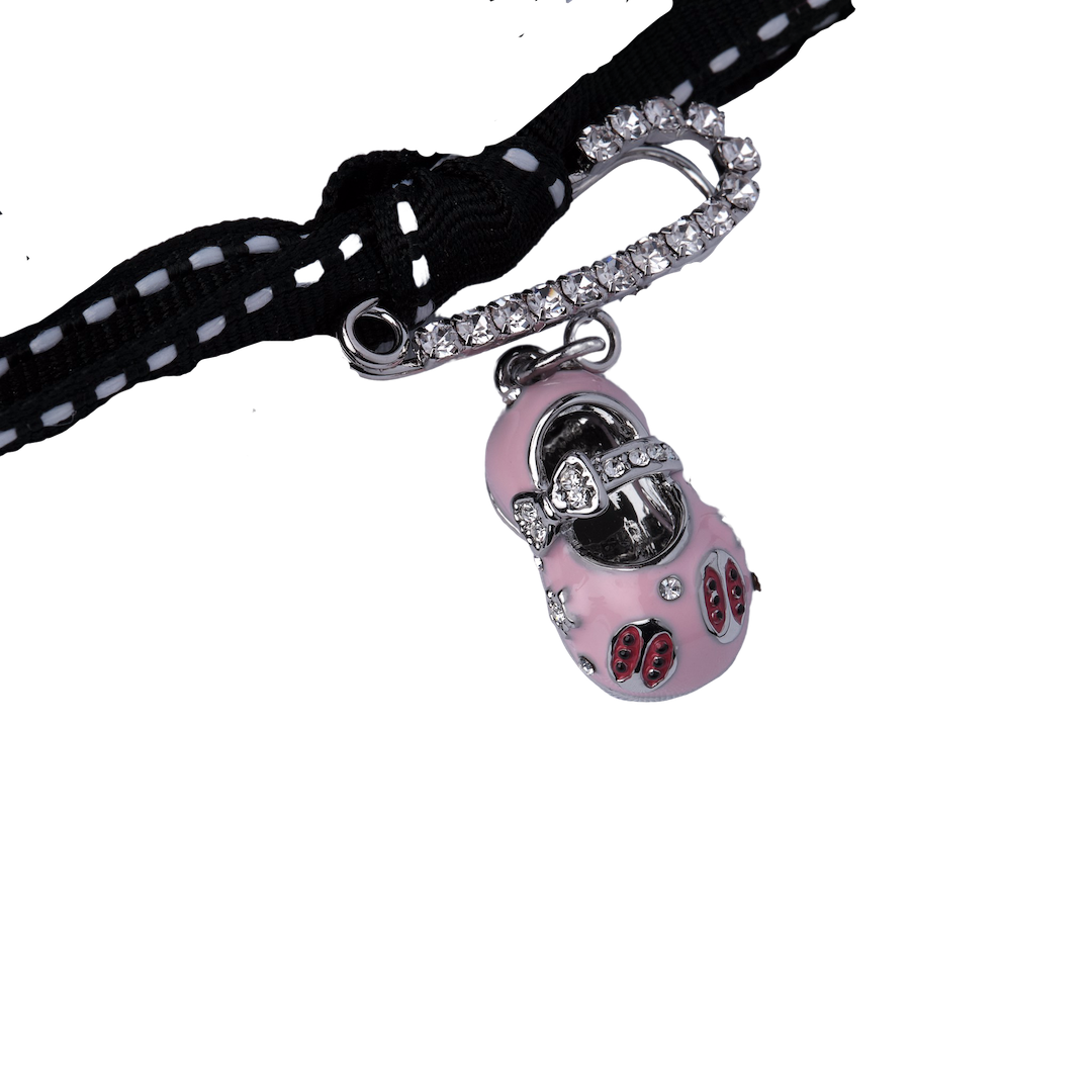 Adorned with an enamel baby shoe charm, this single pink bloom delights in white vegan leather which blends beautifully with any nursery decor!