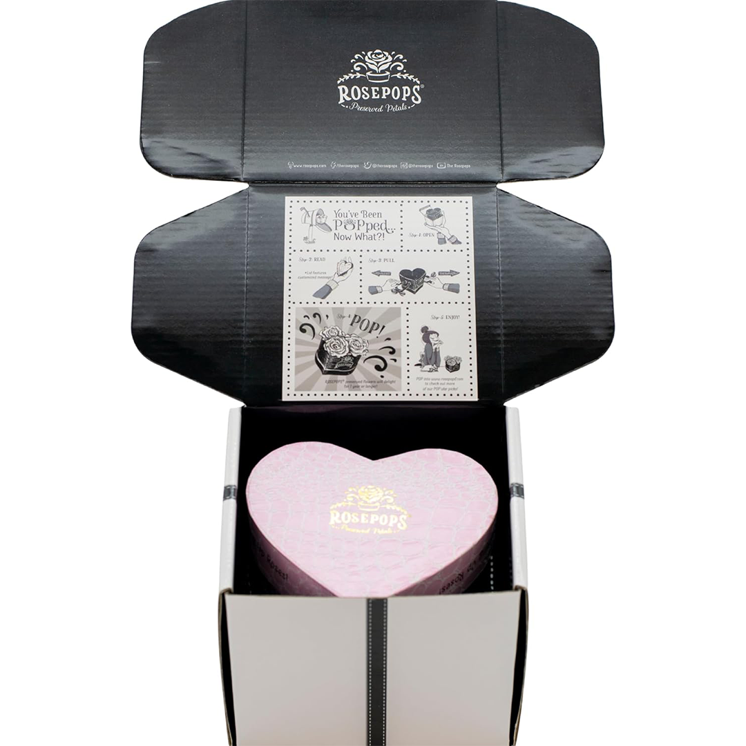 Our mock crocodile pink heart shaped box is the perfect home for a trio of red roses. Sweetened with a custom made kiss charm and a Hey Sweetie Kiss design, your Valentine will be getting a sugar rush when receiving this luscious POP!