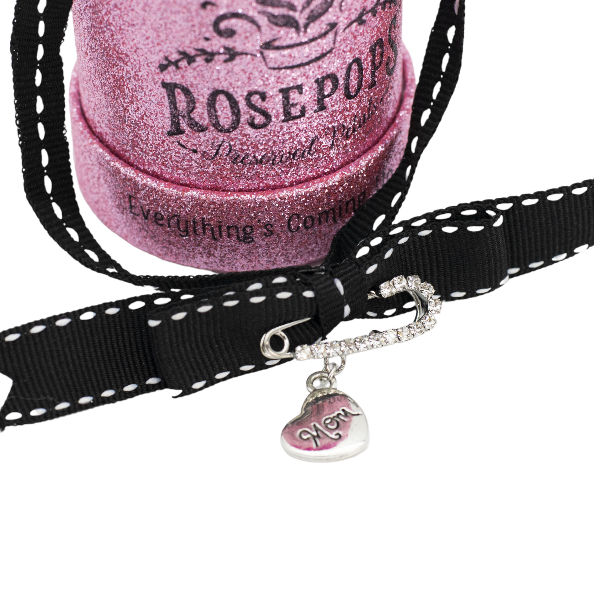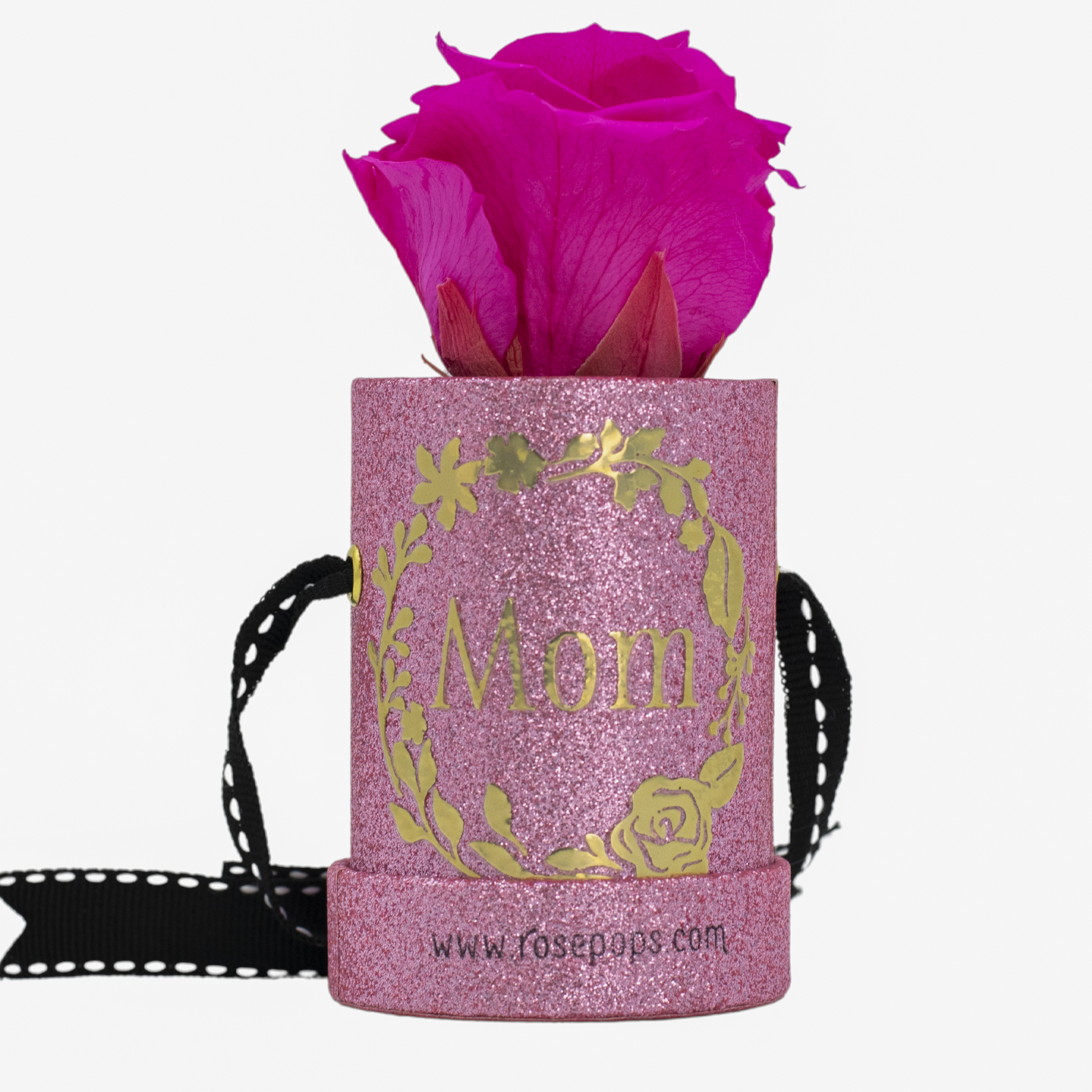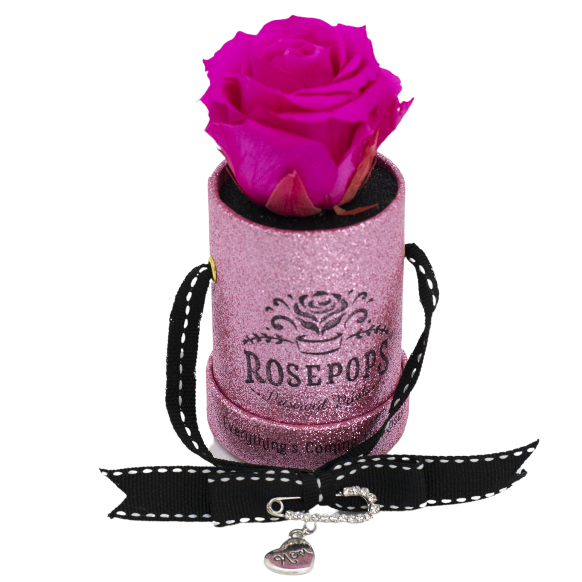 This chic POP is the picture of elegance with a raspberry bloom cradled in a petal pink box. A hand written "mom" heart charm and the gold premade finishes off this delightful POP which will bring all the amour to your lucky recipient!