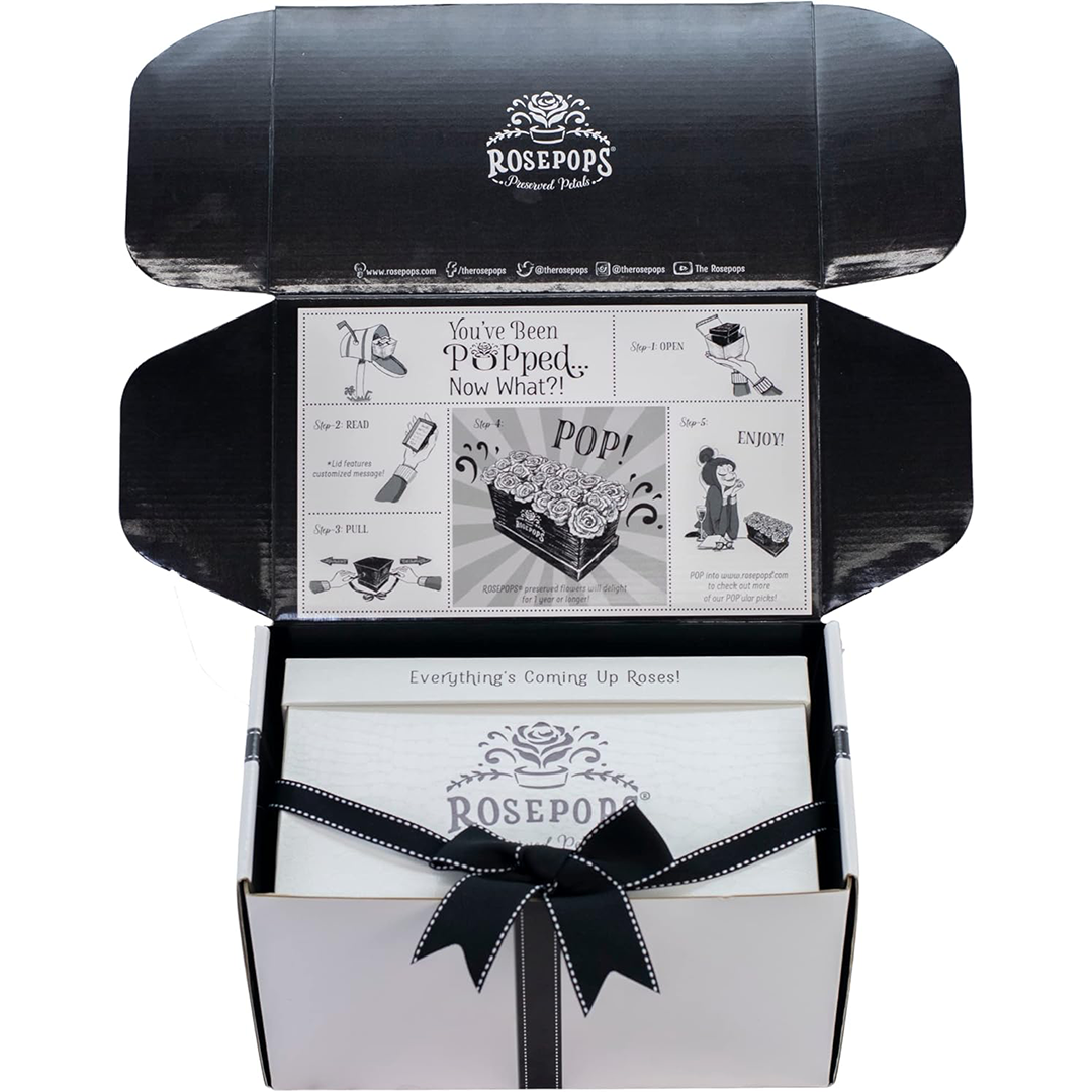 This plentiful POP bursts forth with 18 magnificent pink roses housed in rich mock crocodile boxes! Our largest size POP offers ample room for your personal message to your POP’ee while serving as the perfect canvas for personalized touches such as monograms and charms. These preserved petals have been scented with our custom blended Just Rosy Arosatherapy fragrance