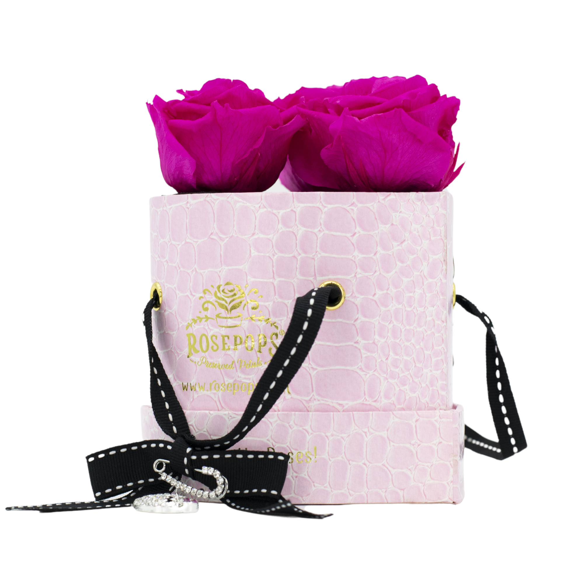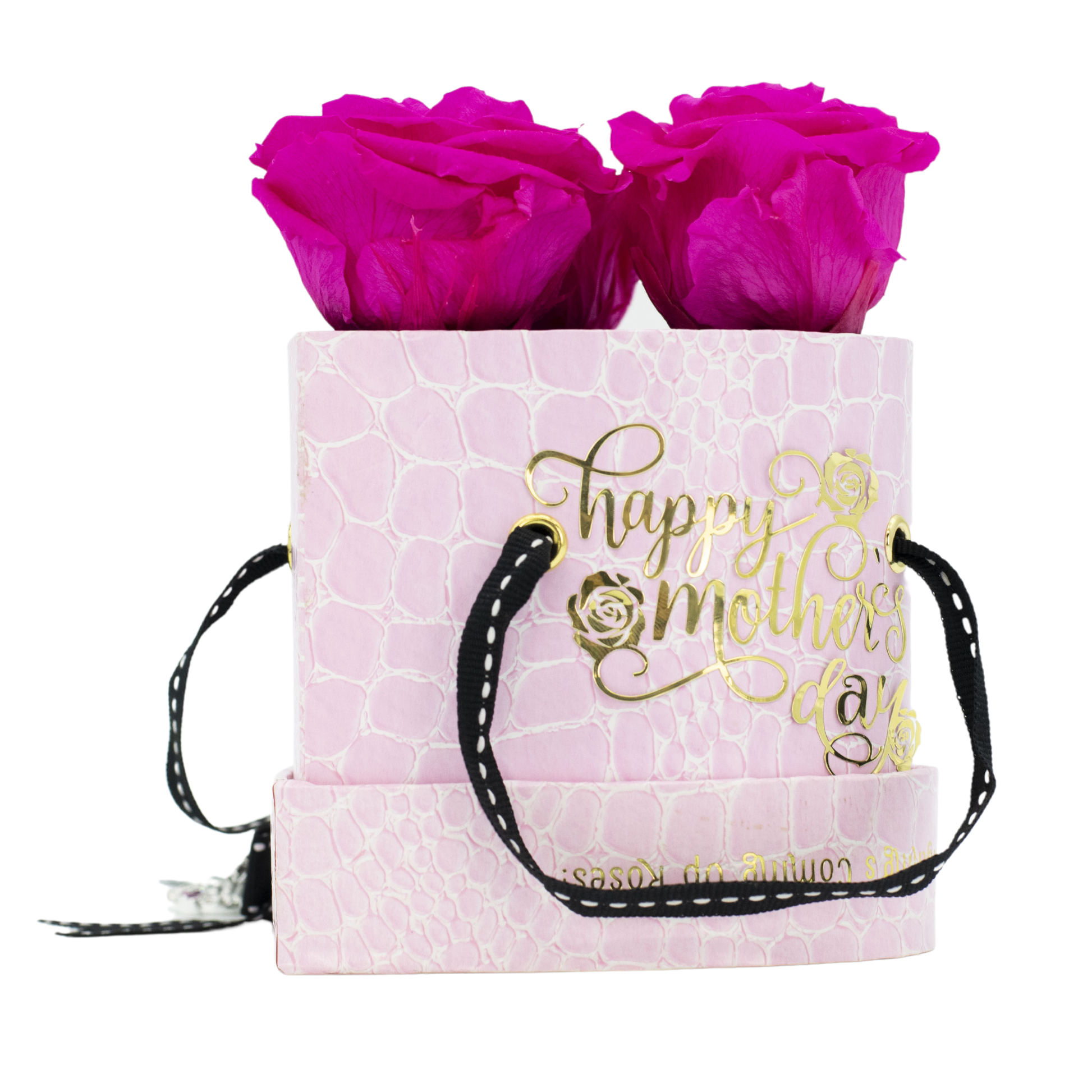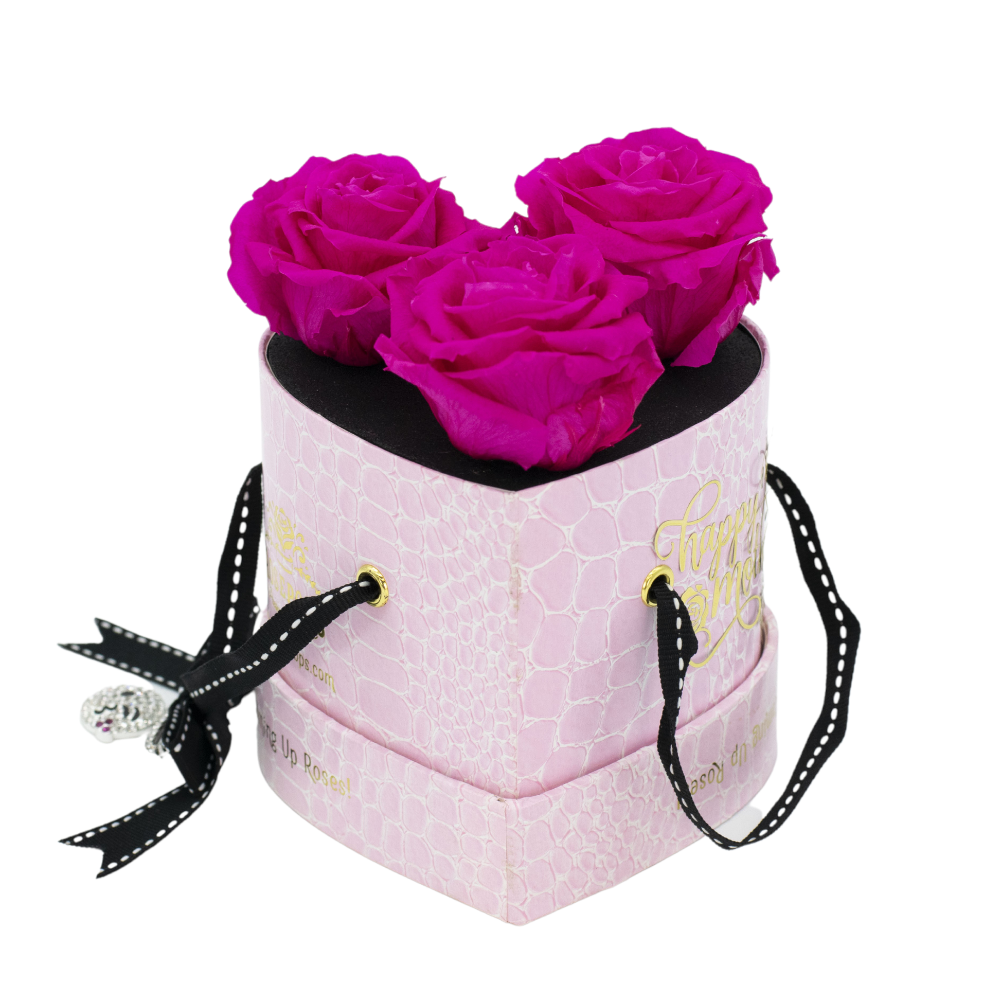 3 ravishing Raspberry roses in our petal pink mock crocodile heart box will bring smiles to any special Mother's Day honoree! Adorned with a gleaming "Happy Mother's Day" appliqué, this arrangement is a real show-POP'per! Finished off with our dazzling Kissy Emoji Charm, this lovely arrangement will delight until next Mother's Day and beyond!